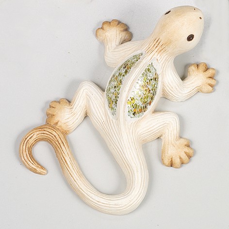 Dekofigur Katze Lina, weiß gesandet Gecko im Mosaikdesign , beige/grün